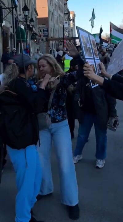 Una mujer de 45 años que afirma ser una “periodista independiente” fue arrestada en Montreal el domingo por la noche durante una manifestación pro-palestina en la que trató de dar un chapuzón filmando e insultando a los manifestantes.