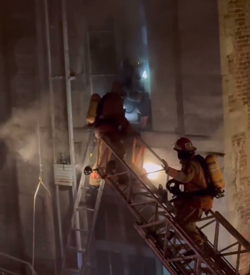 Los vídeos, compartidos en publicaciones efímeras por cuenta del agente inmobiliario Martin Rouleau, muestran a los bomberos accediendo con una escalera a una ventana del segundo piso, en el extremo suroeste del edificio que albergaba un albergue juvenil, antes de extraer a un hombre inconsciente. .
