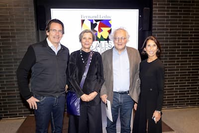 Fernand Leduc es uno de los gigantes de la historia de la pintura. En la foto vemos a Pierre Karl Péladeau, presidente y director general de Quebecor, Isabelle Leduc, pintora-escultora e hija de Fernand Leduc, así como a su socio, René Viau, y a Sylvie Cordeau, vicepresidenta de Quebecor.